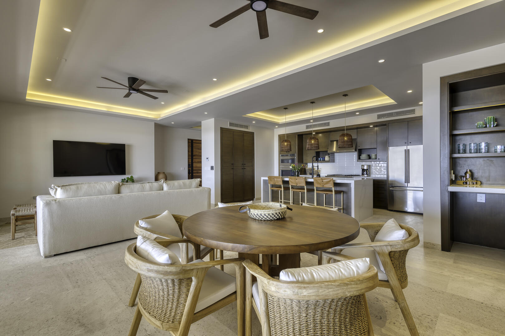 Located within the gated Alvar development at Quivira, Casa Quivira comfortably accommodates up to 16 guests across eight bedrooms and nine bathrooms, offering the scale and flexibility ideal for larger groups seeking both privacy and shared living. Designed as a unified residence composed of two adjacent homes, it delivers a cohesive experience while allowing guests to enjoy generous personal space.