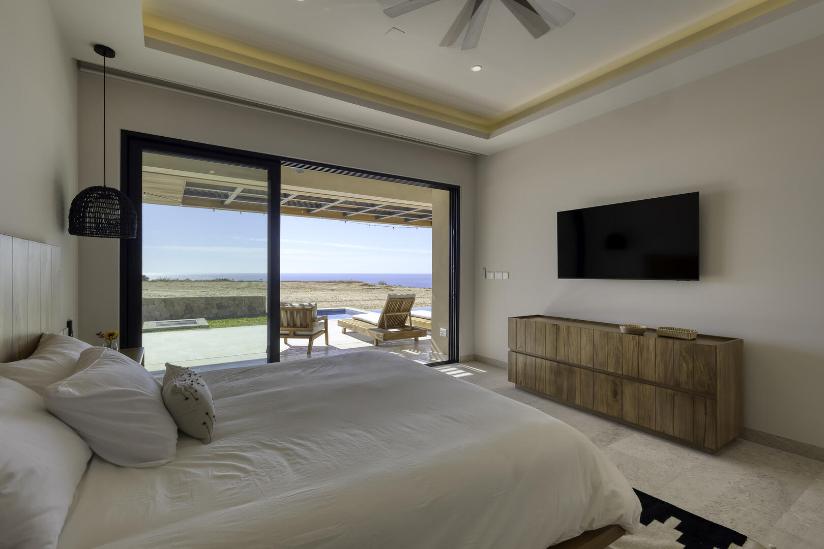 Architecturally, Casa Quivira blends modern coastal design with refined finishes and thoughtful spatial planning. Across eight bedrooms, each with en-suite bathrooms, the residence ensures comfort, privacy and a sense of exclusivity for larger groups. Six of the bedrooms enjoy ocean-facing views, offering sweeping vistas and natural light throughout the day. Open-plan living areas, high-end appliances, generous terraces and seamless indoor-outdoor transitions define the atmosphere, resulting in a refined yet relaxed environment suited for extended stays, shared experiences and elevated coastal living.