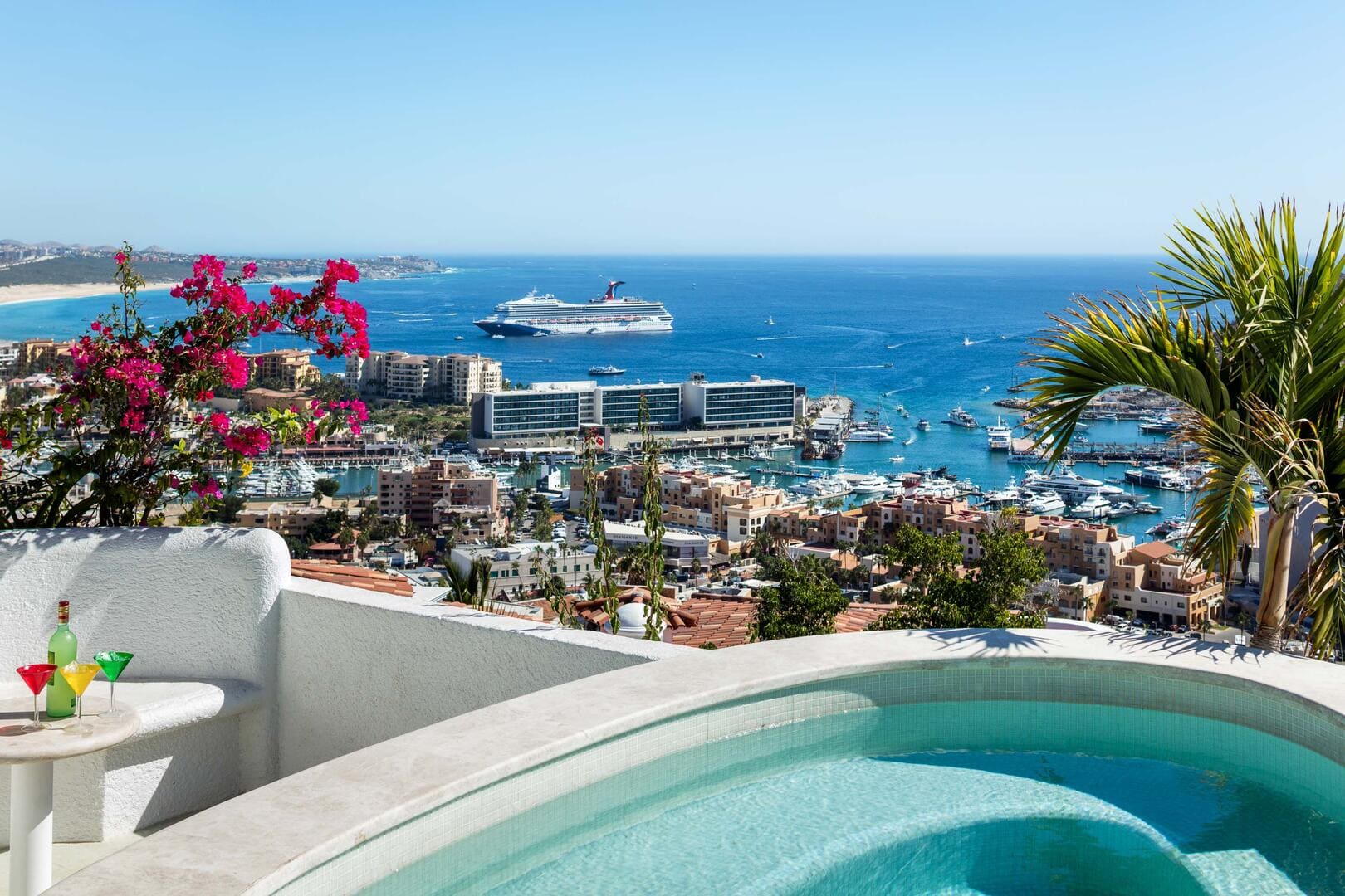Perched within the highly sought-after gated enclave of Pedregal in Cabo San Lucas, Villa Playamar welcomes you with sweeping views of the marina, the Sea of Cortez and the city skyline, an elevated vantage perfect for whale-watching and fireworks.