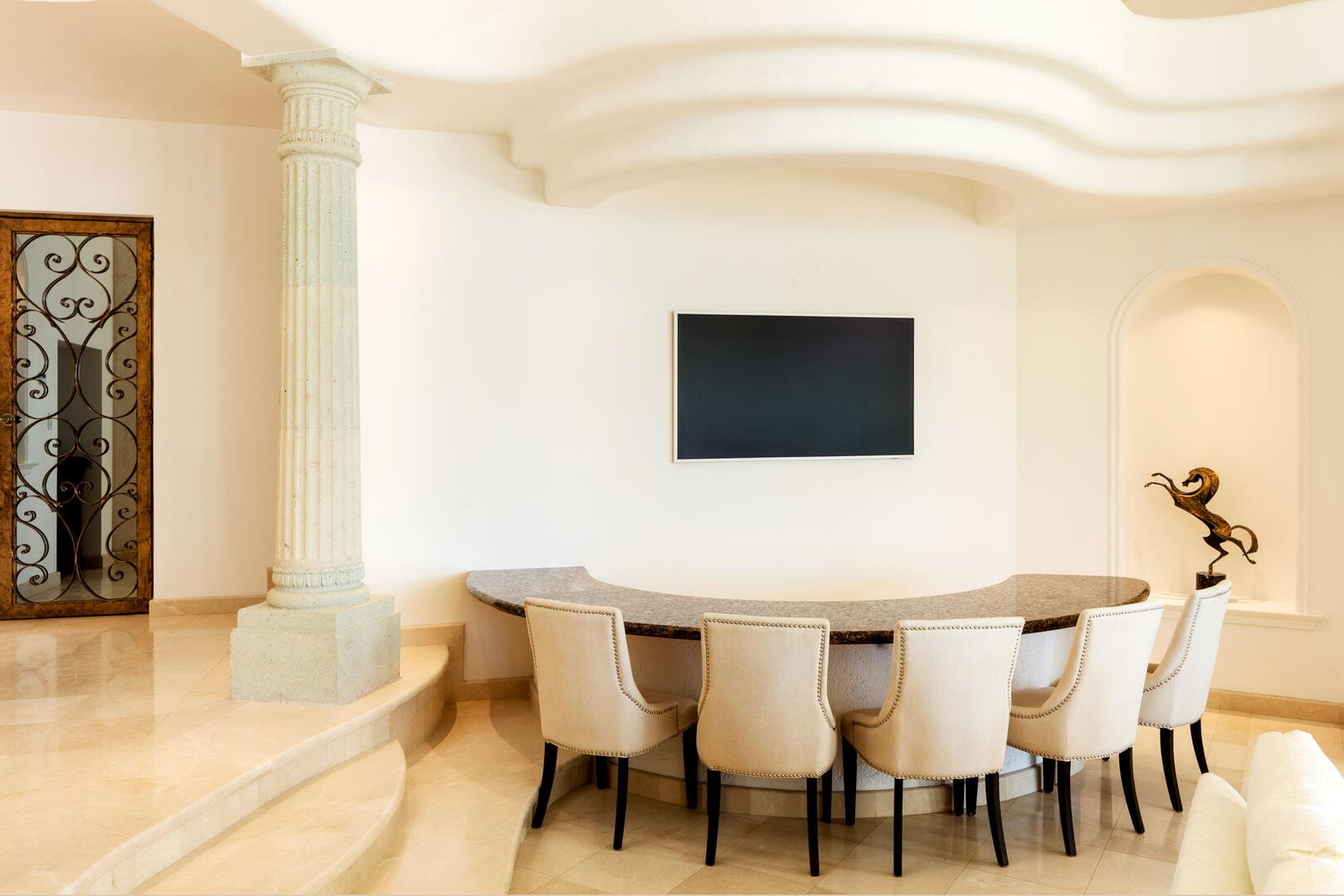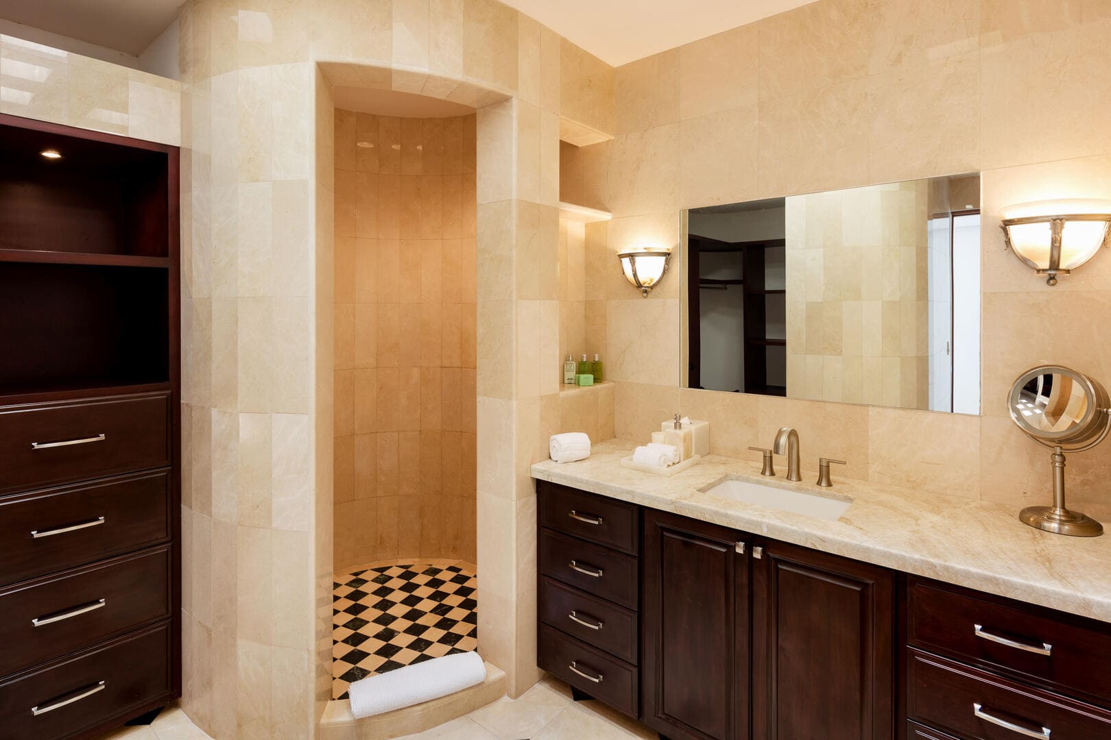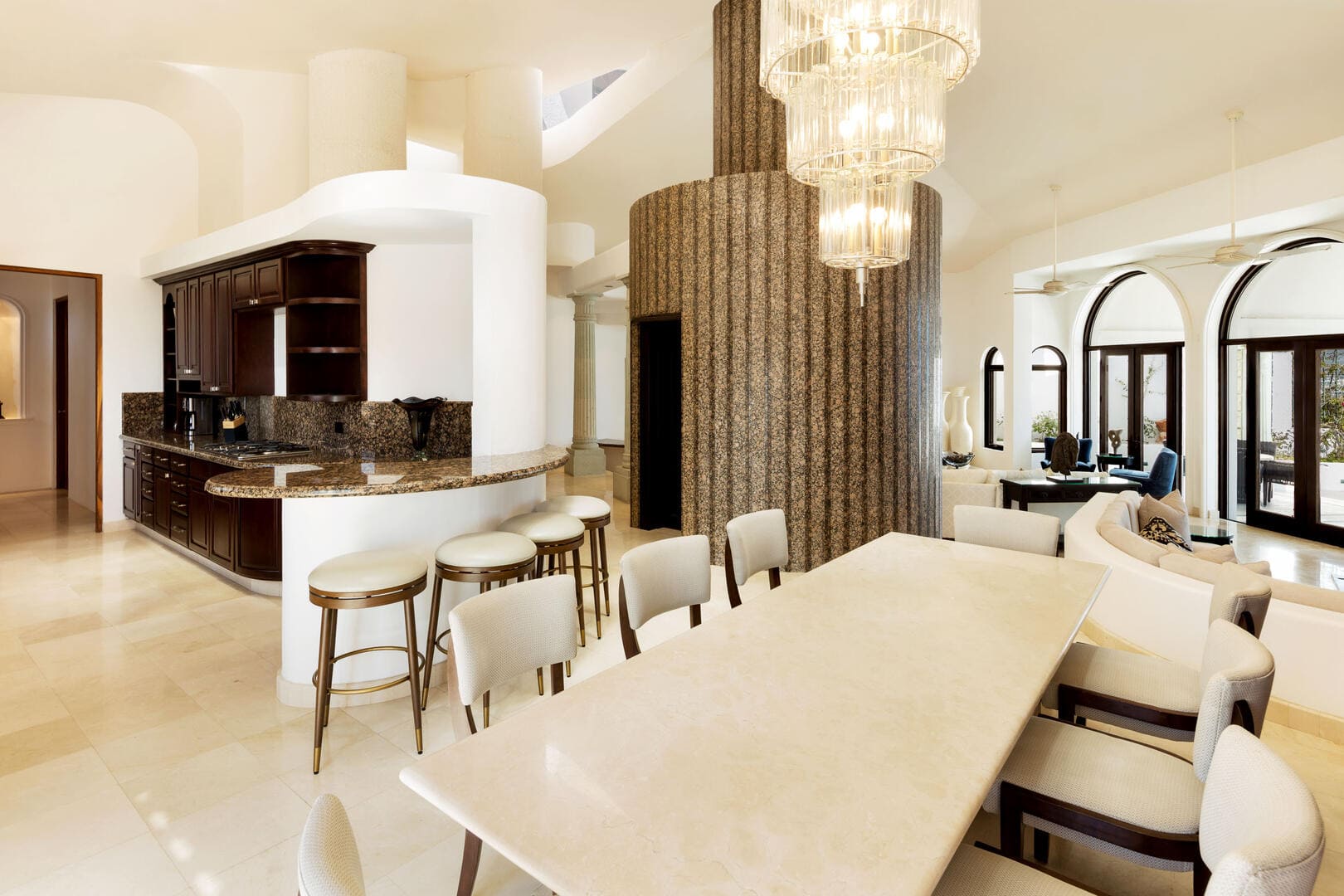 - Marble/travertine floors and luxury finishes